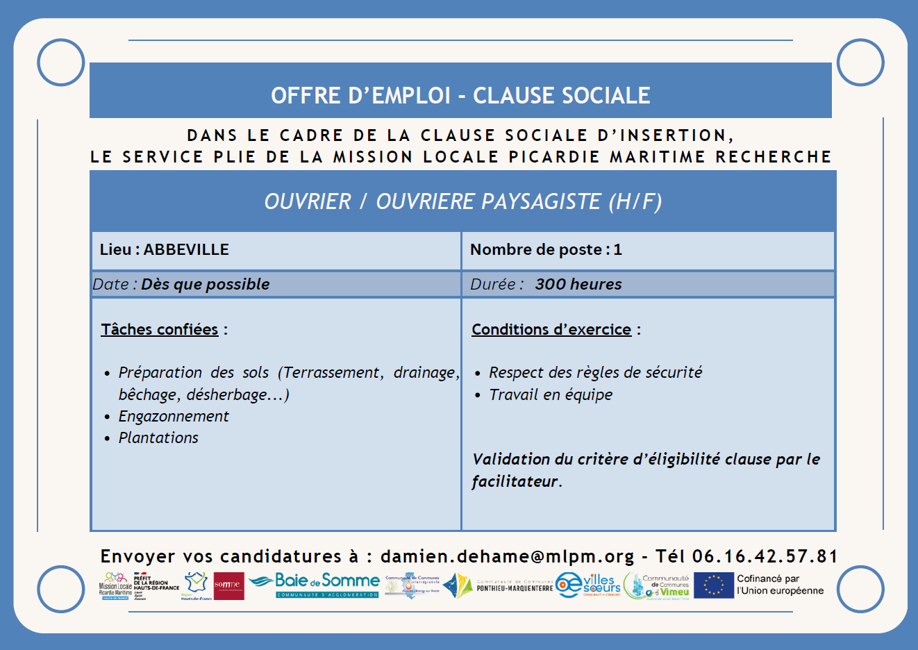 A partir du 15 Juillet 2024 – 1 poste – 265 heures