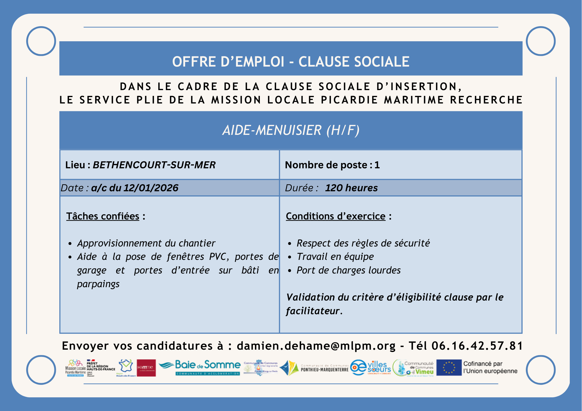 A compter du 12 Décembre 2022 – 1 poste – 127 heures