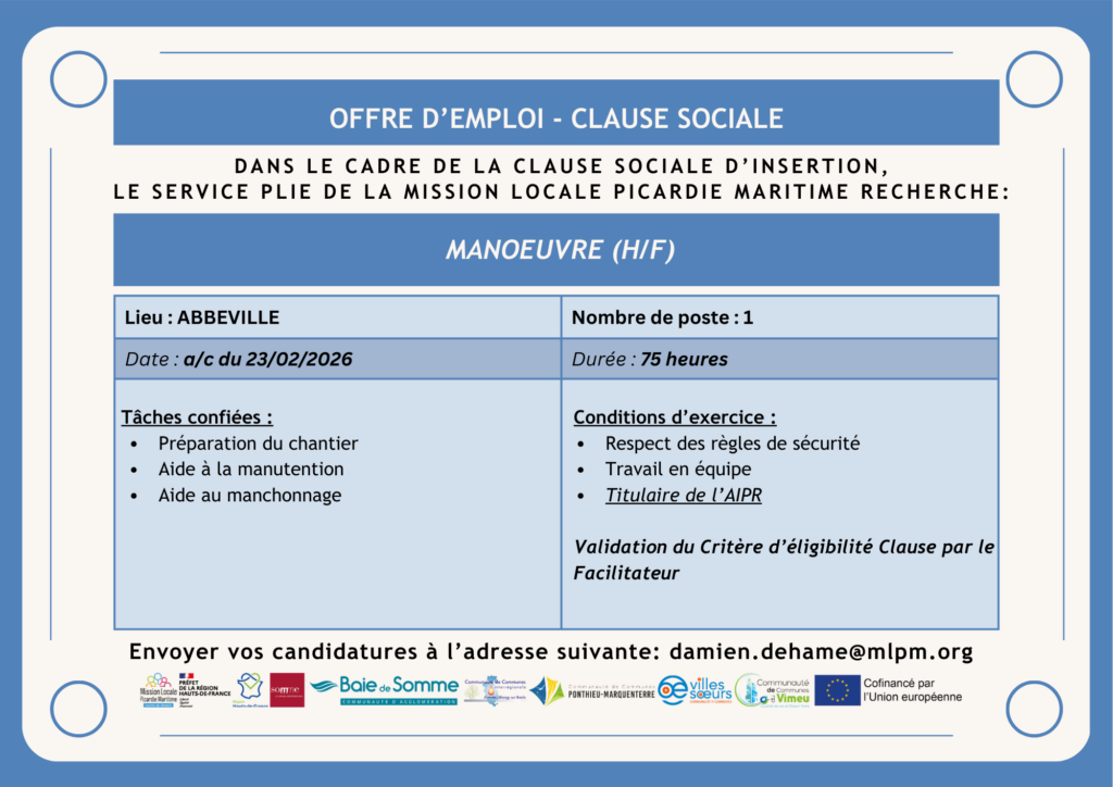 A compter du 21 février 2023 – 1 poste – 92 heures